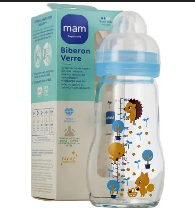 Soyez le premier à laisser votre avis sur “Biberon en verre premium MAM 2+ mois bleu 260 ml”