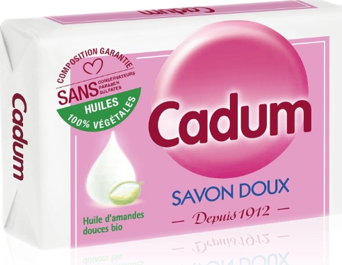 Cadum Savon Doux Huile d’amandes douces bio Une grande douceur pour les peaux de la famille*, même délicates. *Adultes et enfants de plus de 3 ans.