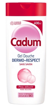 Cadum, spécialiste de la douceur depuis 1907, a mis tout son savoir-faire dans son gel douche Dermo-Respect sans savon et enrichi à l’huile d’amandes douces Bio. Votre peau est douce|souple et éclatante comme la peau d’un bébé. Sa formule sans savon enrichie à l’huile d’amandes douces Bio spécialement développée pour les peaux sensibles et délicates, nettoie votre peau en douceur et la laisse nette et propre.