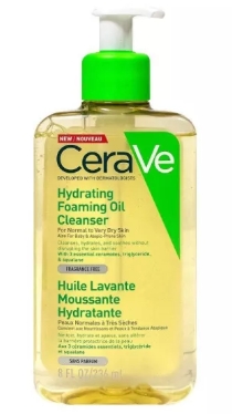 L’huile lavante moussante hydratante Cerave est un soin destiné aux peaux normales à très sèches. Elle nettoie, hydrate et apaise grâce à sa formule adaptée, réunissant des céramides essentiels, du triglycéride et du squalane. Sans parfum, cette dernière est hypoallergénique et non comédogène, pour une neutralité optimale sur l’épiderme et un renforcement de la barrière cutanée contre l’agression desséchante du calcaire de l’eau du robinet.
